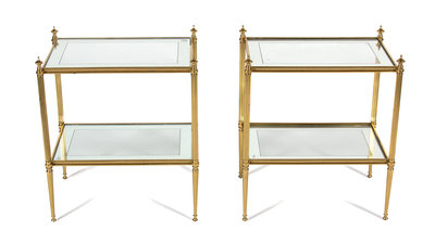 A Pair of French Gilt Bronze and Glass Two-Tier End Tables Height 23 x width 19 1/2 x 13 1/4 inches.