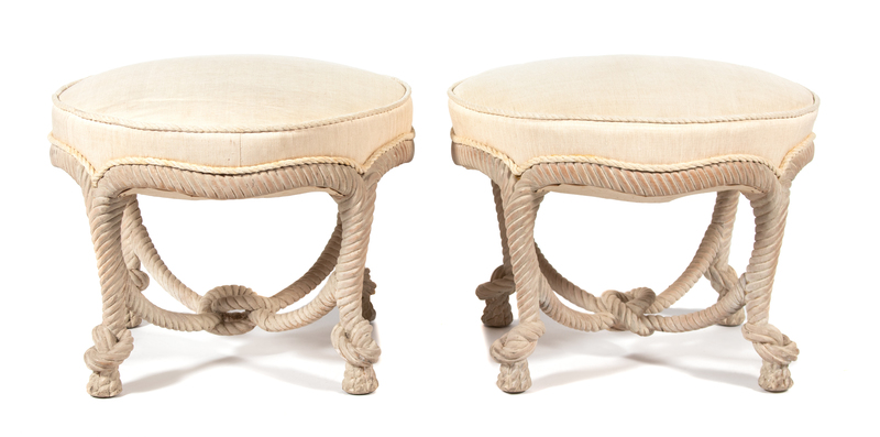 A Pair of Painted Faux-Rope Stools Height 19 x diameter 24 inches.