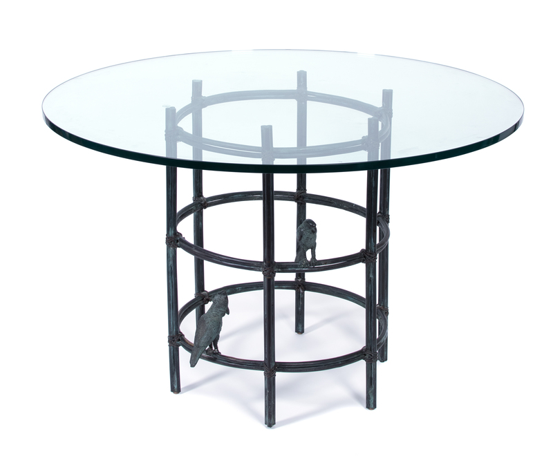 A Maitland-Smith Bronze Glass Top Table Height 29 x diameter 45 inches.