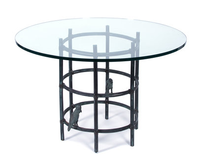 in the manner of Diego Giacometti, the base having two rings with a fully sculpted parrot on each.