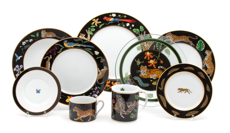 A Large Lynn Chase Jaguar Jungle Porcelain Dinner Service Diameter of dinner plate 10 3/4 inches.