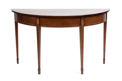 A Regency Style Demi-Lune Console Table Height 29 x width 48 x depth 24 inches.
