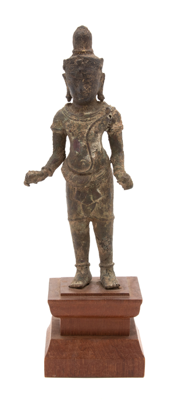 A Khmer Bronze Figure of a Standing Buddha Height 7 inches.