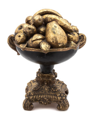 An Italian Ebonized and Gilt Fruit Bowl Height 16 inches.