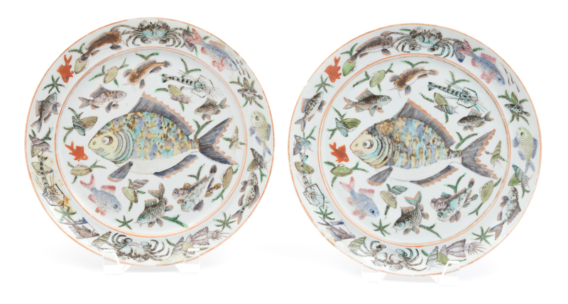 Ten Chinese Export Porcelain Plates Diameter 9 1/2 inches.