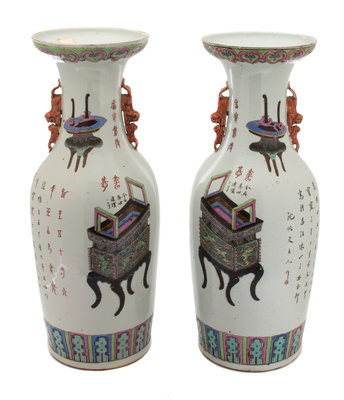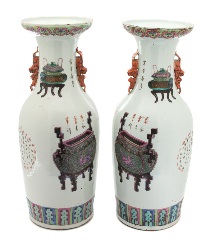 A Pair of Chinese Porcelain Vases Height 24 inches.