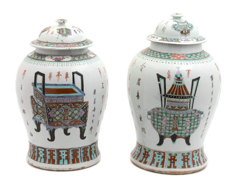A Pair of Chinese Porcelain Covered Jars Height 16 1/4 inches.
