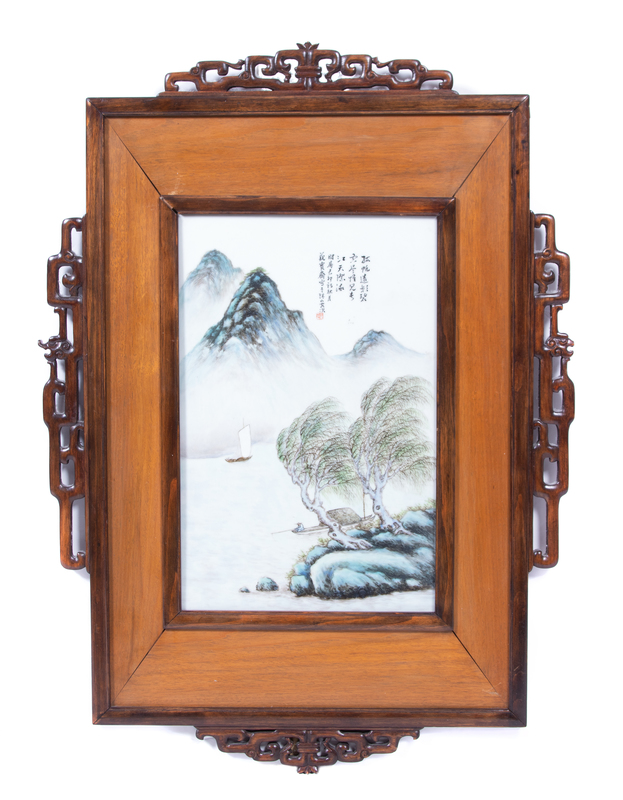 A Chinese Enameled Porcelain Plaque Plaque size: 15 x 9 3/4 inches.