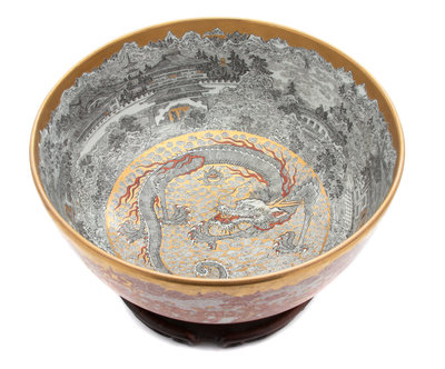 A Kutani Bowl with Stand Height 6 x diameter 12 inches.
