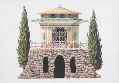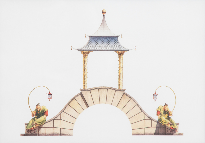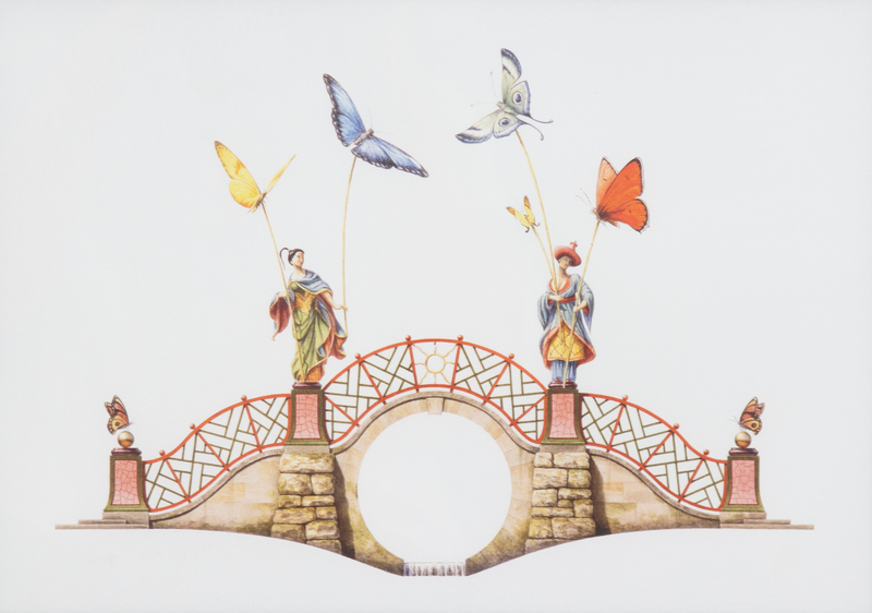 A Group of Gilt Framed Color Reproductions of Dams & Zega's Watercolors Chinoiseries Framed 13 5/8 x 17 1/2 inches.