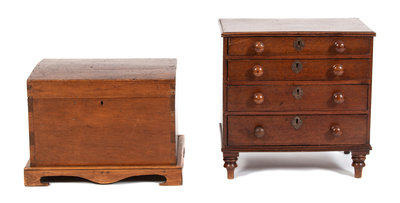 A Diminutive English Chest of Drawers Height of tallest 18 inches.