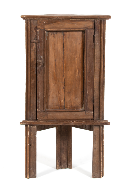 A Continental Carved Oak Painted Corner Cabinet Height 43 1/2 x width 23 1/2 x depth 10 1/2 inches.