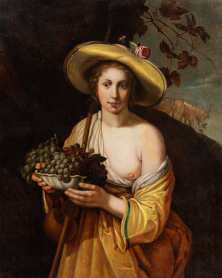 Artist Unknown, (Continental, 19th Century), Maiden in Yellow Hat with Bowl of Grapes