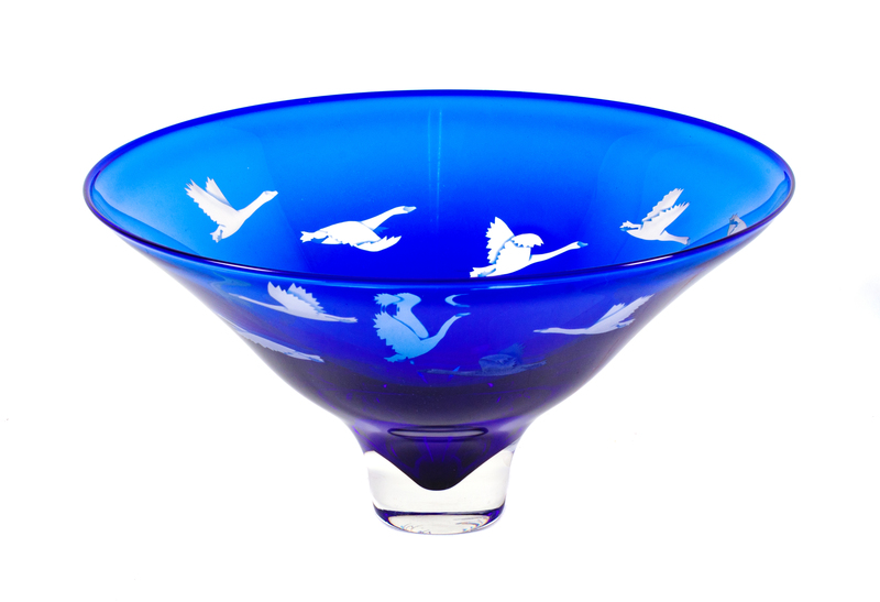 Geese Bowl, glass, signed L Thal 194.92 (base)
