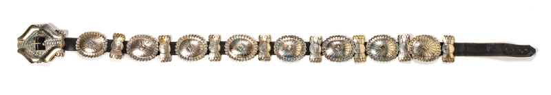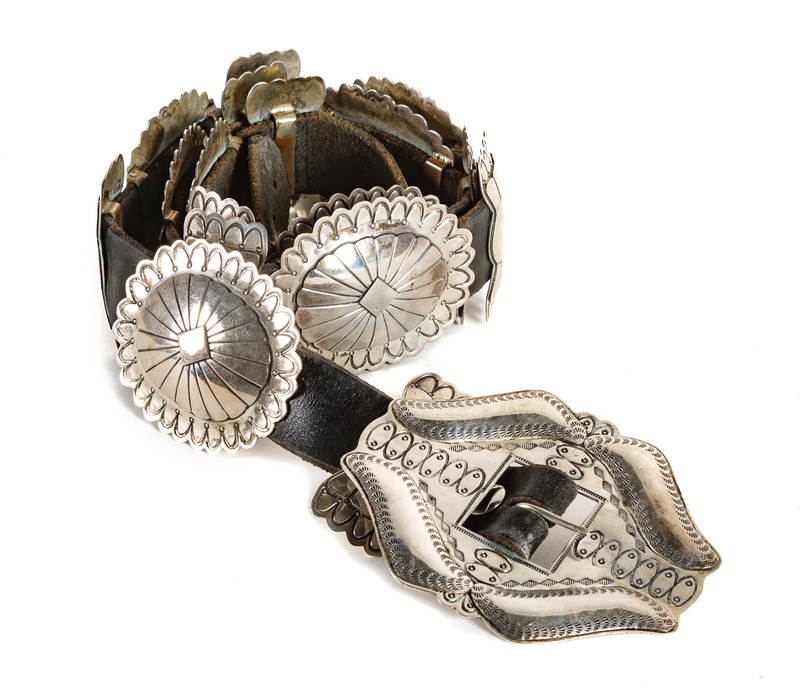 having eight oval conchos alternating with nine butterflies and matching diamond form buckle
