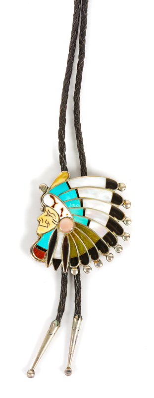 silver and multi-stone chef bolo, stamped R. Quam Zuni