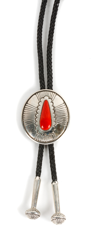 silver and coral bolo stamped J.I. Livingston