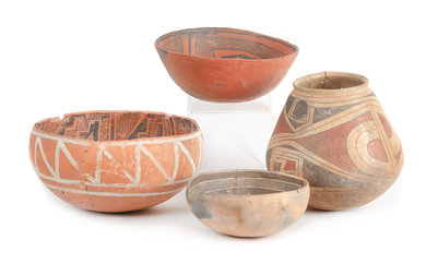 including a Casas Grandes Pot and three pots with geometric designs