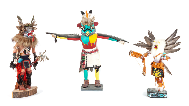Three Contemporary Carved Wood Kachinas Height of largest 15 inches
