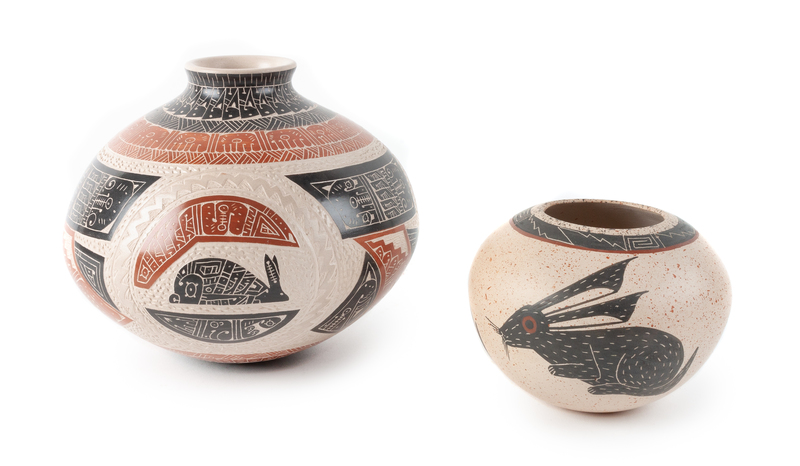 Two Mata Ortiz Polychrome Vases Height of larger 4 1/2 x 5 1/2 inches