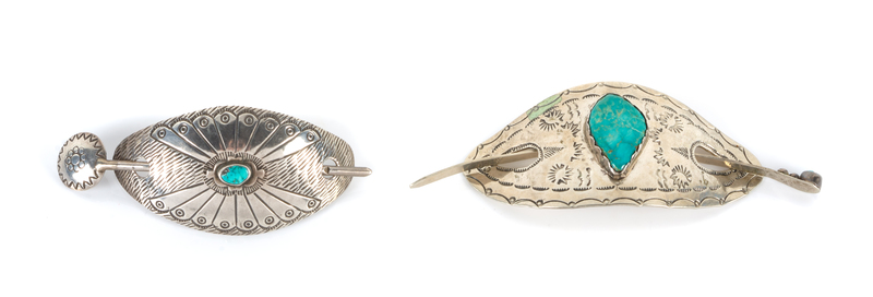 Two Southwestern Silver and Turquoise Hair Pieces Length of larger 4 x width 2 inches