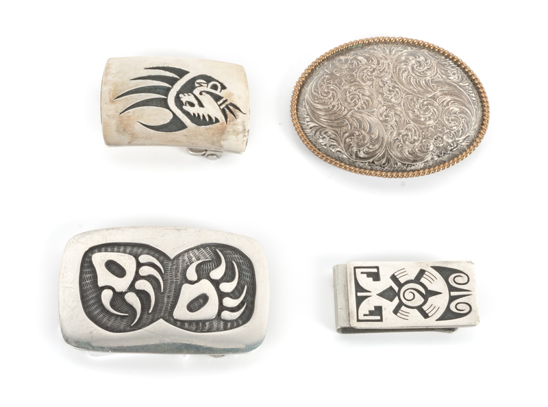 Three Southwestern Silver Belt Buckles Height of largest 2 x width 3 inches