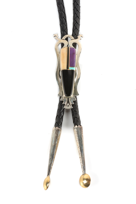 Southwestern Silver and Multi-Stone Bolo Height 3 x width 1 1/4 inches