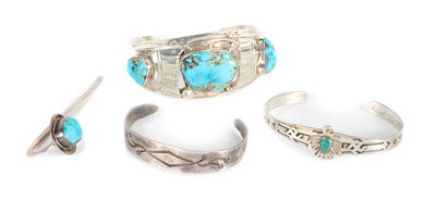 Three Southwestern Bracelets Length of first 5 3/8 x opening 1 1/4 x width 1 3/8 inches