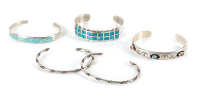 Five Southwestern Silver Bracelets Length of one 5 1/2 x opening 1 x width 3/8 inches