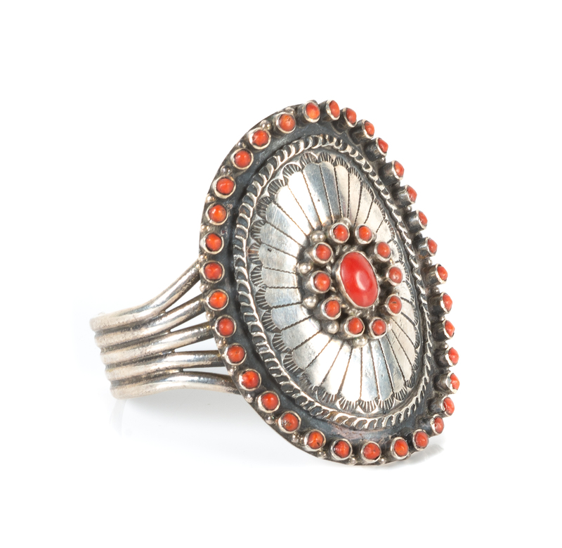 Navajo/Zuni Silver and Coral Cuff Bracelet 6 inches around with 1 inch opening
