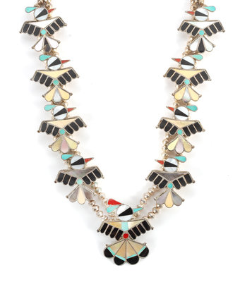 Zuni Mosiac Inlay Thunderbird Necklace Length 27 inches