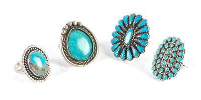 Four Southwestern Silver and Turquoise Rings