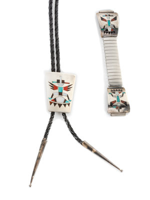 Zuni Mosaic Inlay Thunderbird Bolo and Watch Tips Height of bolo 1 3/4 inches
