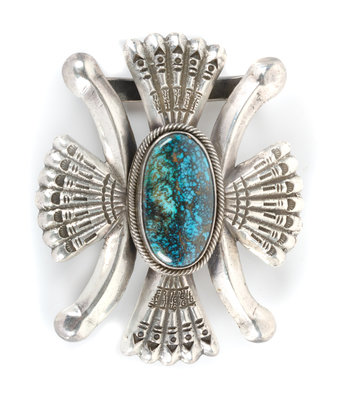 Southwestern Silver and Turquoise Belt Buckle Height 2 3/4 x 3 3/4 inches