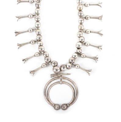 Southwestern Silver Squash Blossom Necklace Length 22 inches