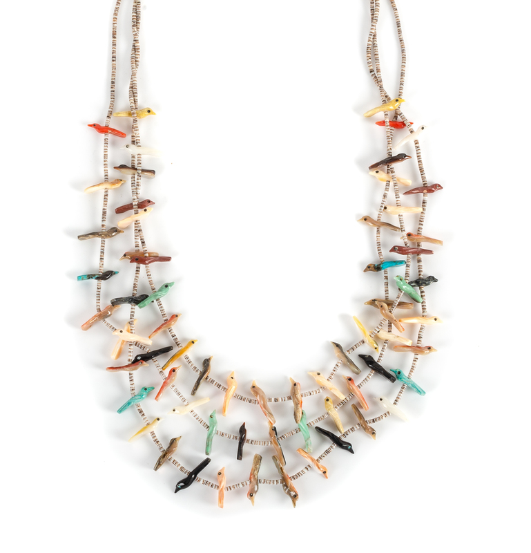 Southwestern Three Strand Bird Fetish Necklace Length 28 inches