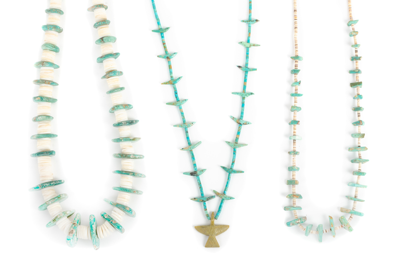 Three Southwestern Turquoise and Shell Necklaces Length of largest 26 inches