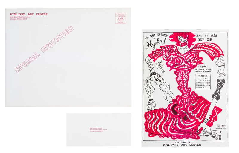 Karl Wirsum, (American, b. 1939), We Got Nuthun to Hyde! Unique Art Auction at 8/Special Fund Razor, 1974 together with original envelo