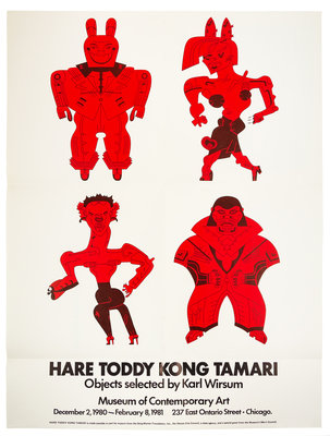 Karl Wirsum, (American, b. 1939), Hare, Toddy, Kong Tamari: objects selected by Karl Wirsum Exhibition Poster 1980 and We Sing Moming