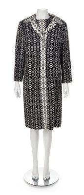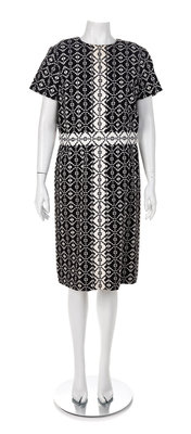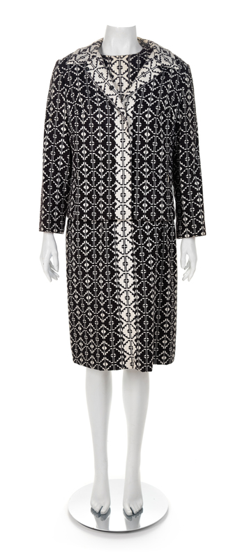 Elaine Ames Two-Piece Black and White Geometric Cotton Ensemble, 1960s No size label