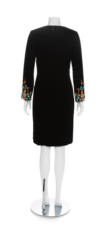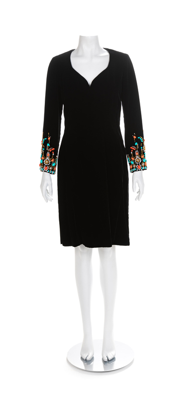 Kiki Hart Black Velvet Dress With Jeweled Cuffs, 1960-70s Size label: 6