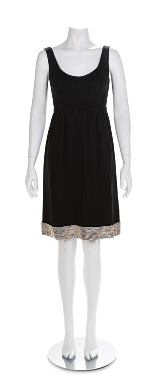 Black Sleeveless Cocktail Dress with Rhinestone Embellishments on the Hem,