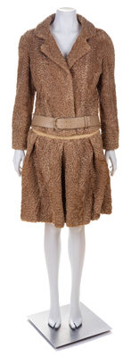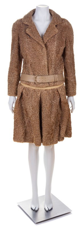 A Bergdorf Goodman Tan Persian Lamb Fur Skirt Suit, 1960-70s No size label