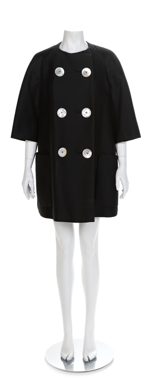 Black Coat with Oversize Pearlescent Buttons, 196s