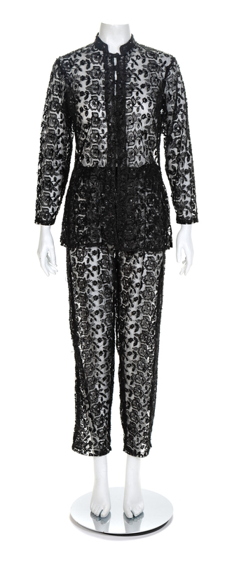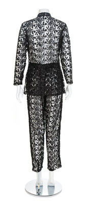 Black Net Embroidered Two Piece Pant Ensemble, 1960-70s