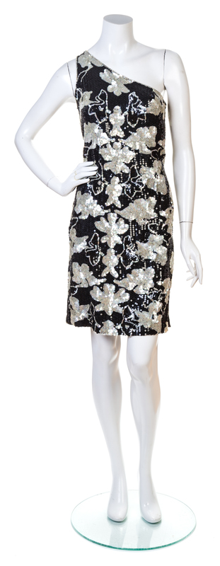 Oleg Cassini One-Shoulder Floral Sequin Dress, 1960-70s No size label