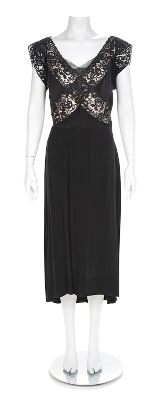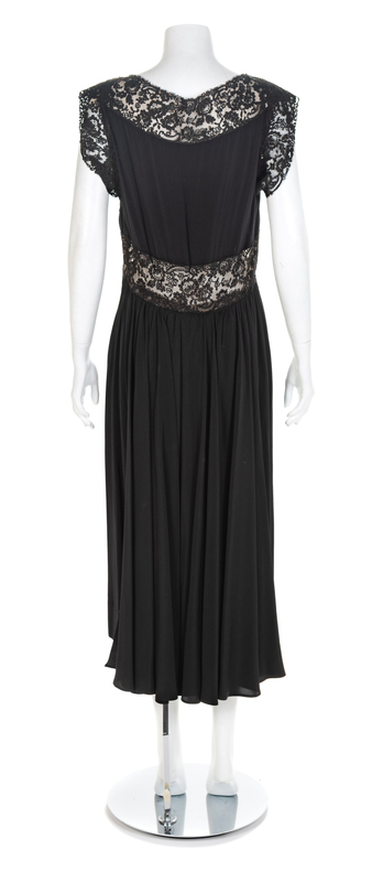 Nettie Rosenstein Black Silk and Guipure Lace Dress, 1950s No size label