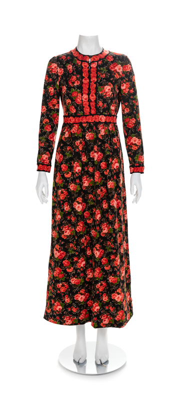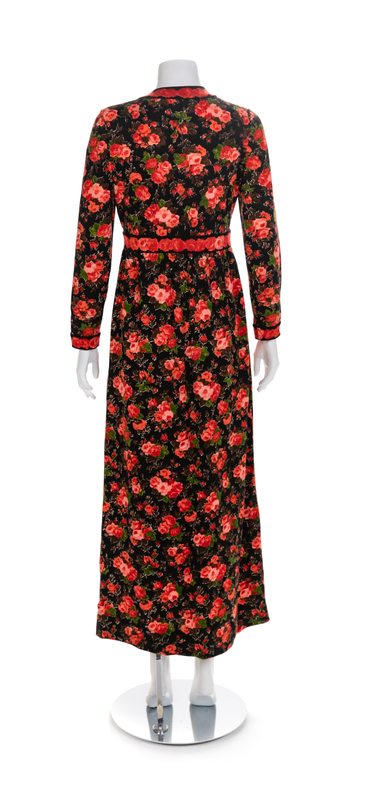 Goldworm Black Red Floral Patterned Dress, 1960-70s Size label: 10