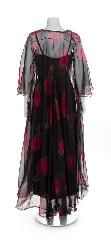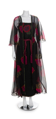 Beaded Flower Chiffon Long Dress with Matching Kimono and Belt, 1970-80s