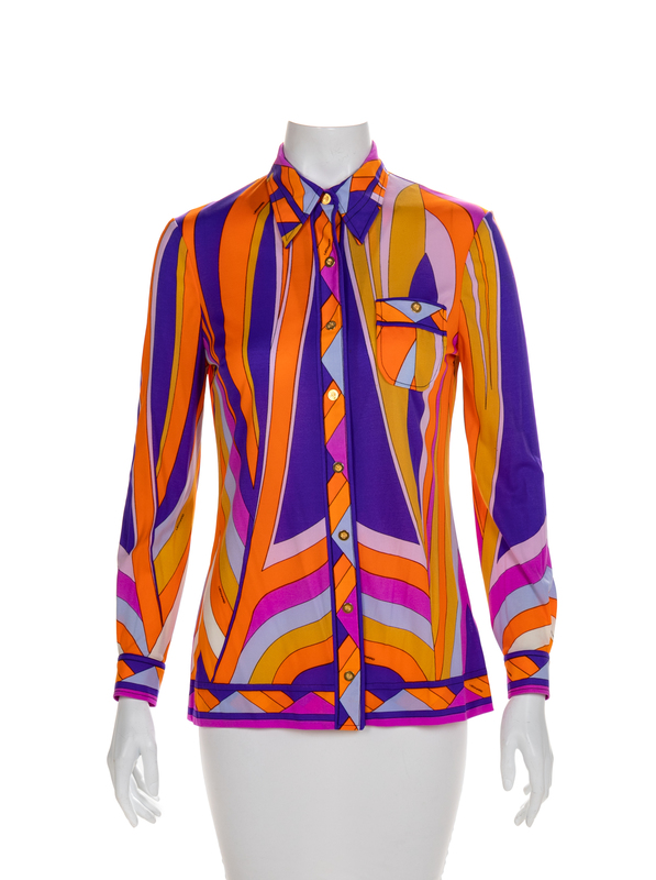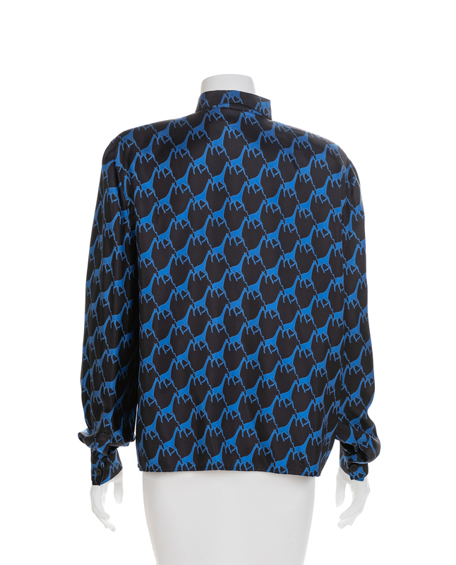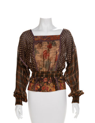 Made by; Krizia (blue and black animal print), Ted Lapidus (navy), Leonard Fashion (Multicolor Geometric), KOOS Peasant Blouse (brown).